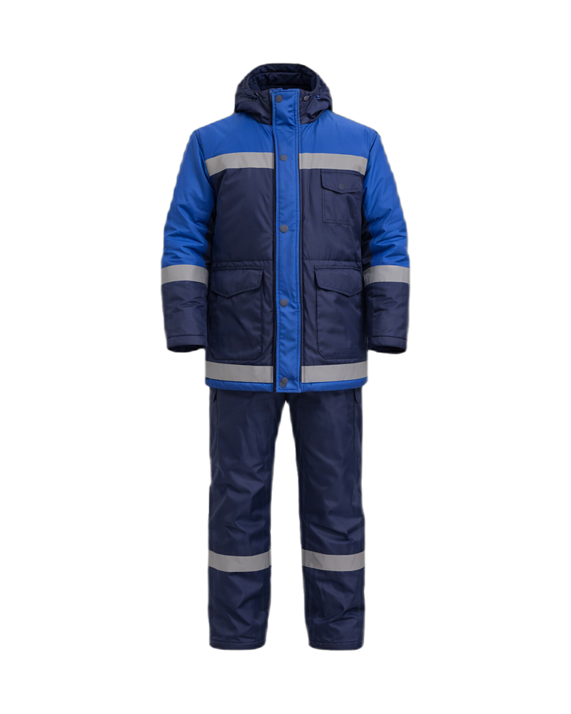 Constructed from durable, weather-resistant outer fabric with effective thermal insulation, the set helps retain body heat and shield the wearer from wind and cold conditions. Reflective bands enhance visibility in low-light environments, improving on-site safety. Multiple practical pockets allow easy access to tools and personal items, while the ergonomic cut ensures freedom of movement during demanding work tasks.