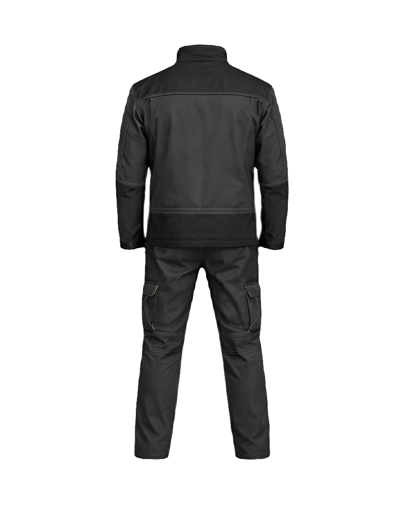 - Two-piece workwear set: jacket and trousers.
