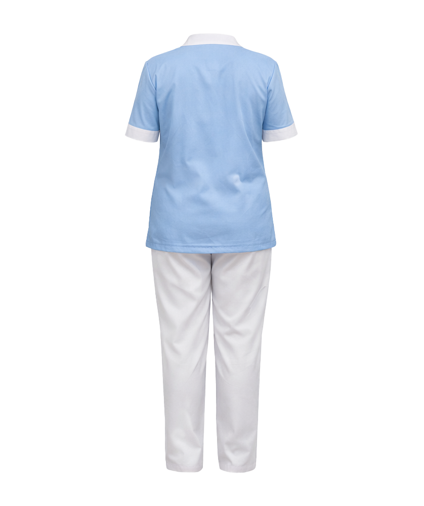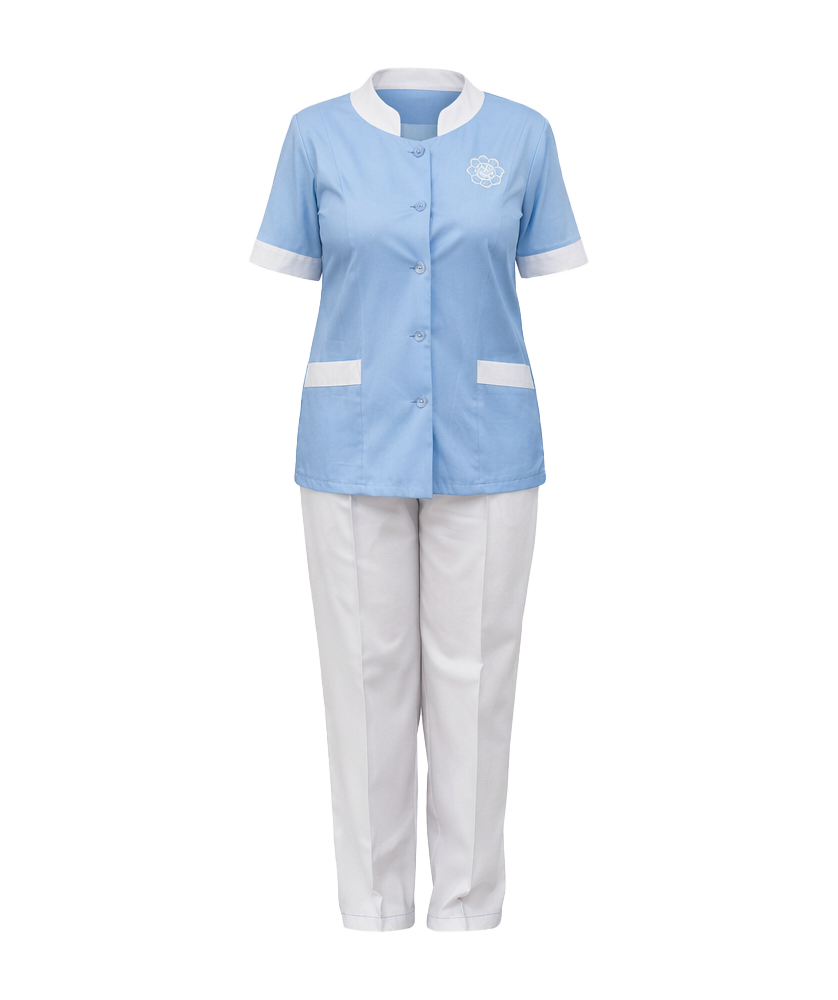 This lightweight professional uniform set is designed for medical, healthcare, and service staff who require a clean, neat, and comfortable appearance throughout the workday. The soft color combination creates a calm, professional look, making it suitable for clinics, laboratories, beauty centers, and hygiene-focused environments.