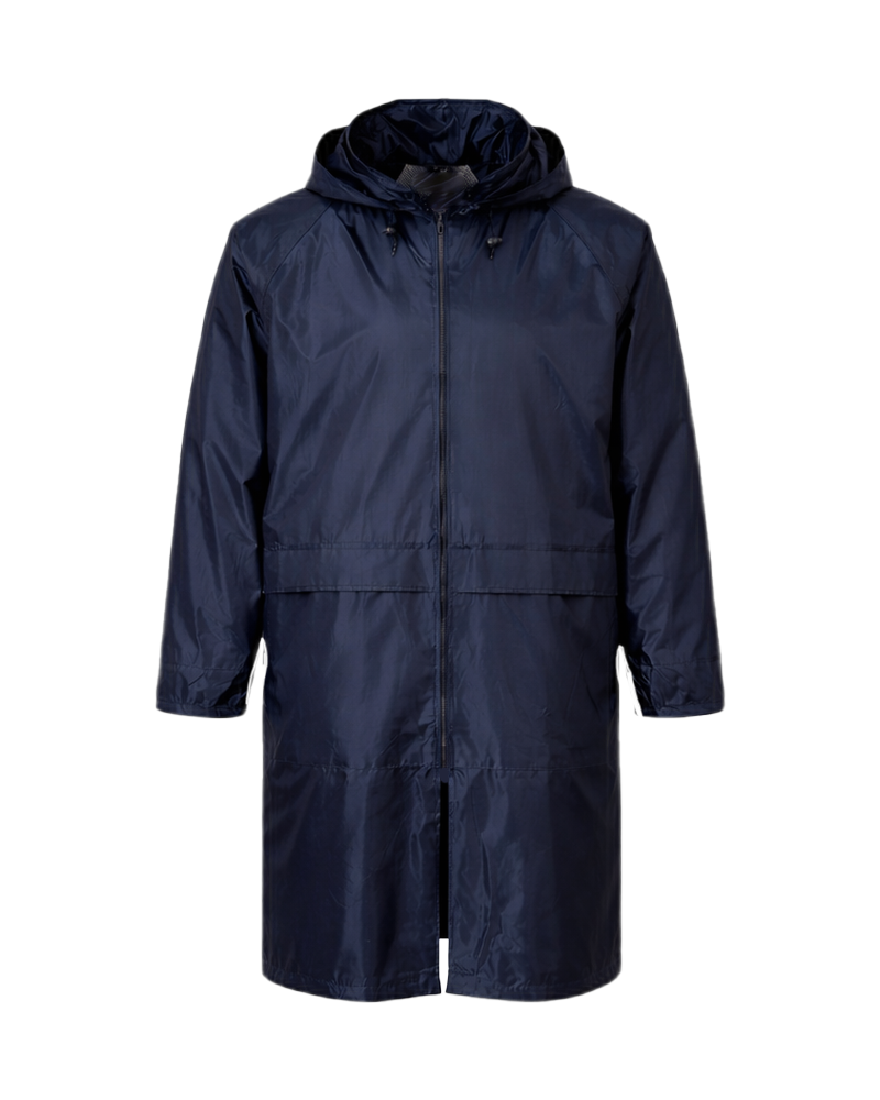 This lightweight rain jacket is designed for professionals who need reliable protection during outdoor work in wet and windy conditions. Its extended length and minimalist design make it suitable for construction, logistics, utilities, and service tasks where weather resistance and unrestricted movement are essential.