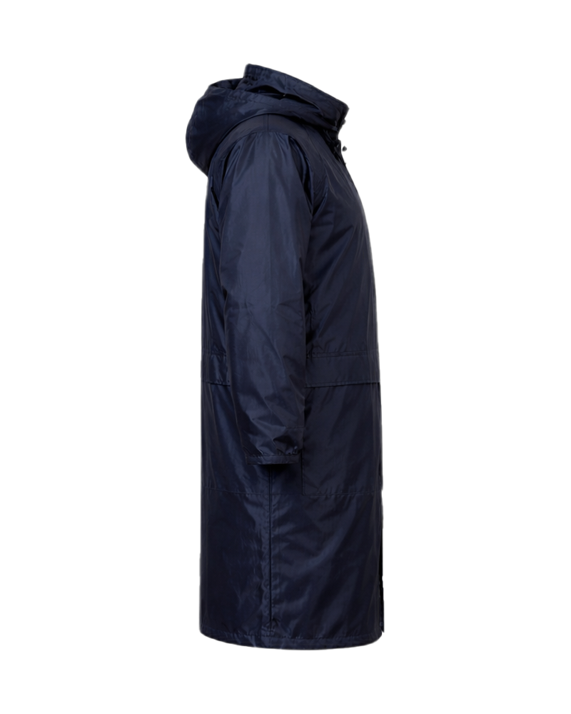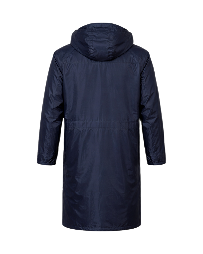 Made from water-resistant fabric, the jacket helps shield the wearer from rain while remaining comfortable for long periods of use. The integrated hood, full-length front zipper, and relaxed fit provide practical coverage and ease of layering, ensuring dependable comfort and functionality throughout the workday.